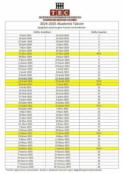 Test Education Centre olarak, eğitim ve danışmanlık hizmetlerimizin planlı ve kesintisiz şekilde yürütülmesi için Akademik Takvimimizi sizlerle paylaşıyoruz.